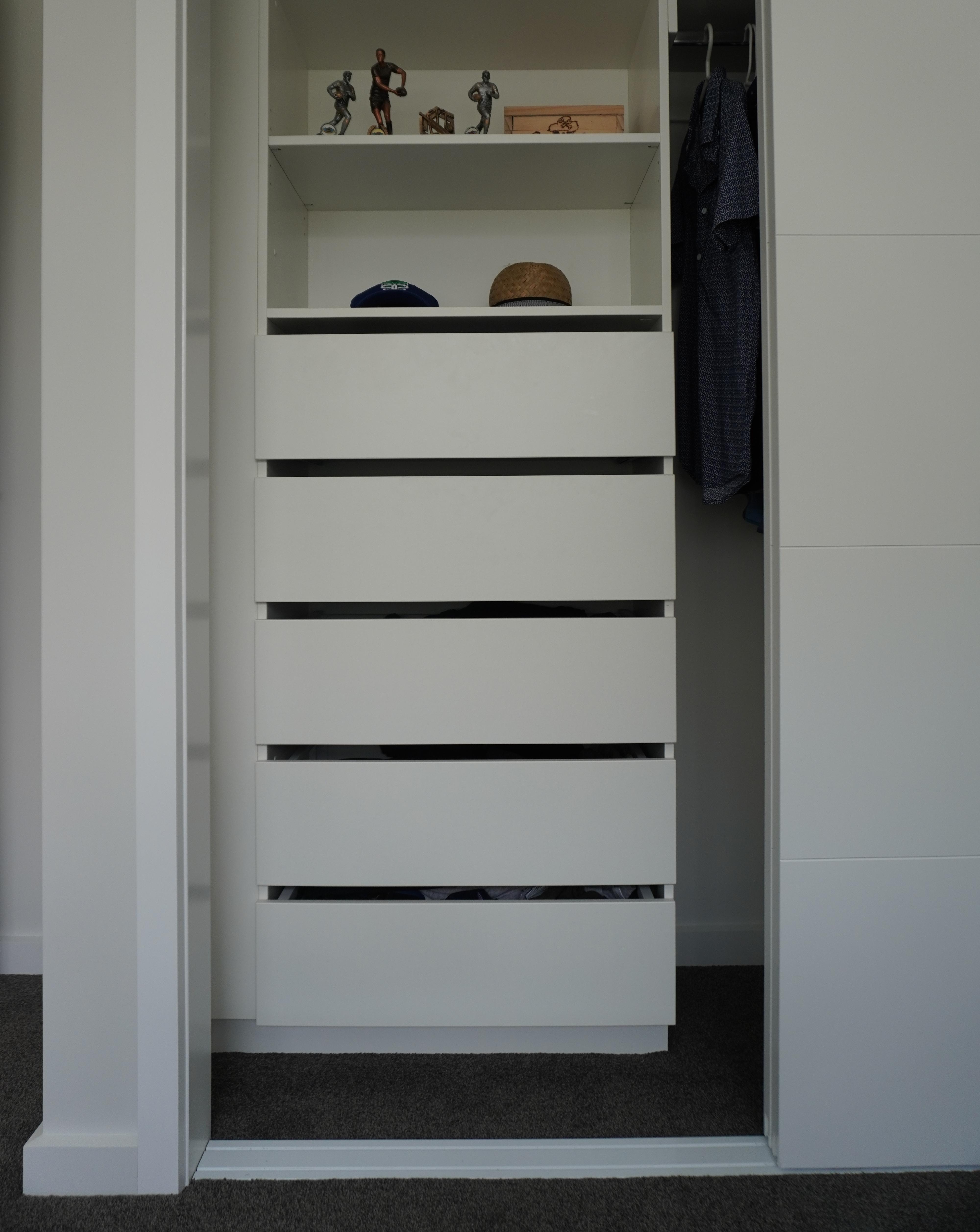 Organise your clothes and make it easy to find what you need with custom-made wardrobe storage. Our team can create effective storage options no matter how big or small your space.